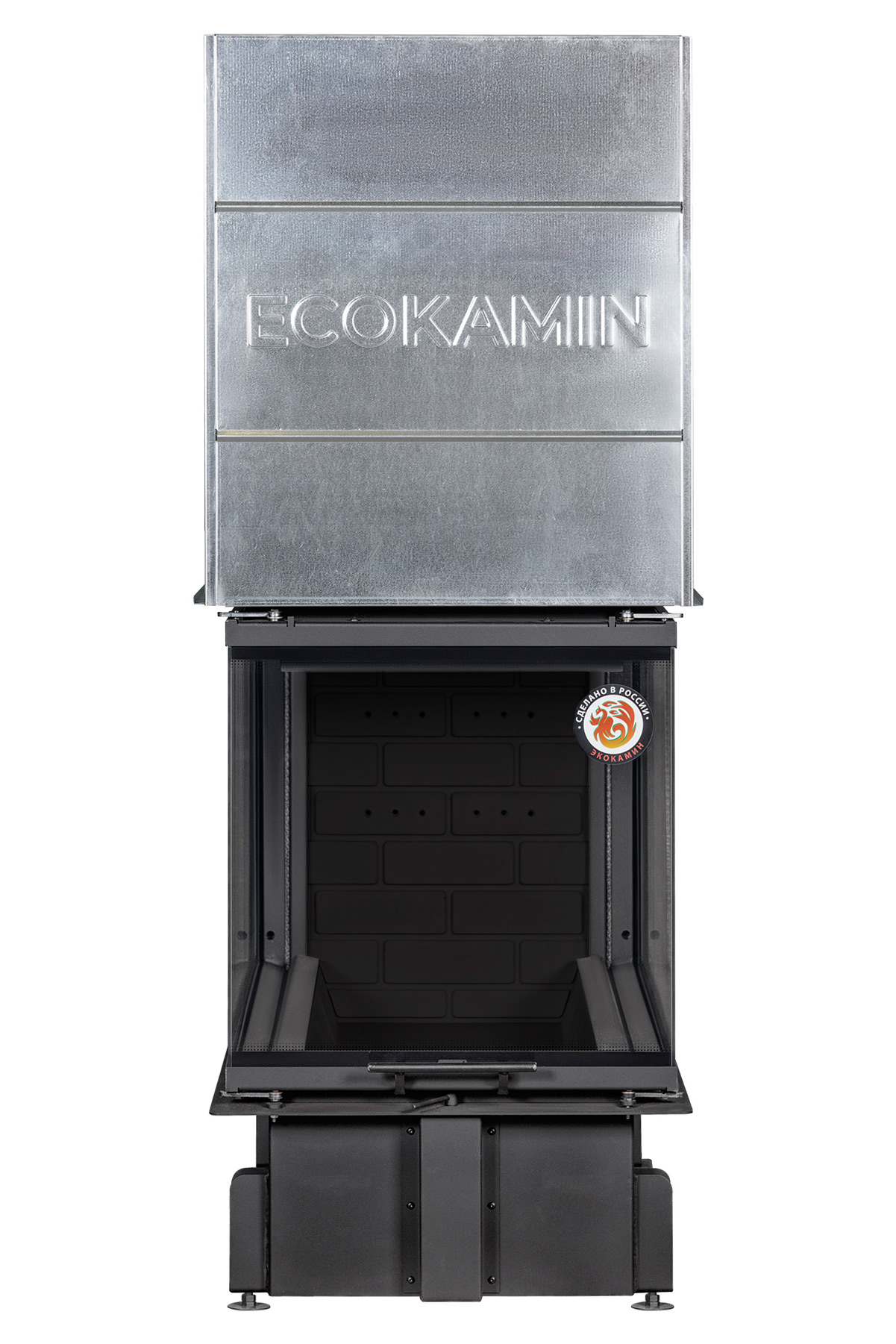 Каминная топка Экокамин ДЕЛЬТА 900 PB три стекла подовое горение принтинг черный шамот