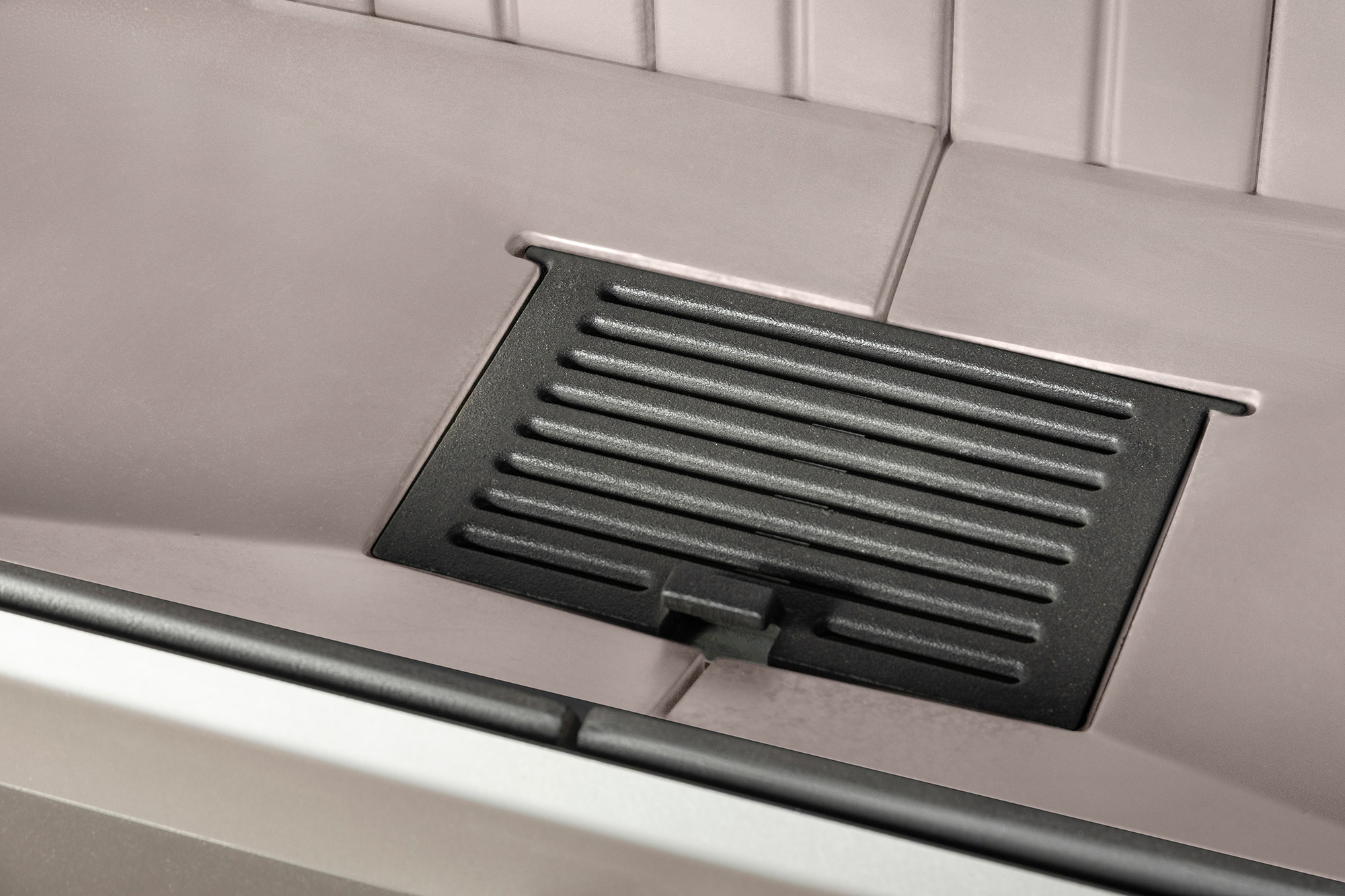 - Под чугунной колосниковой решеткой в днище топки, находится большой зольный ящик, который удобно вынимается.