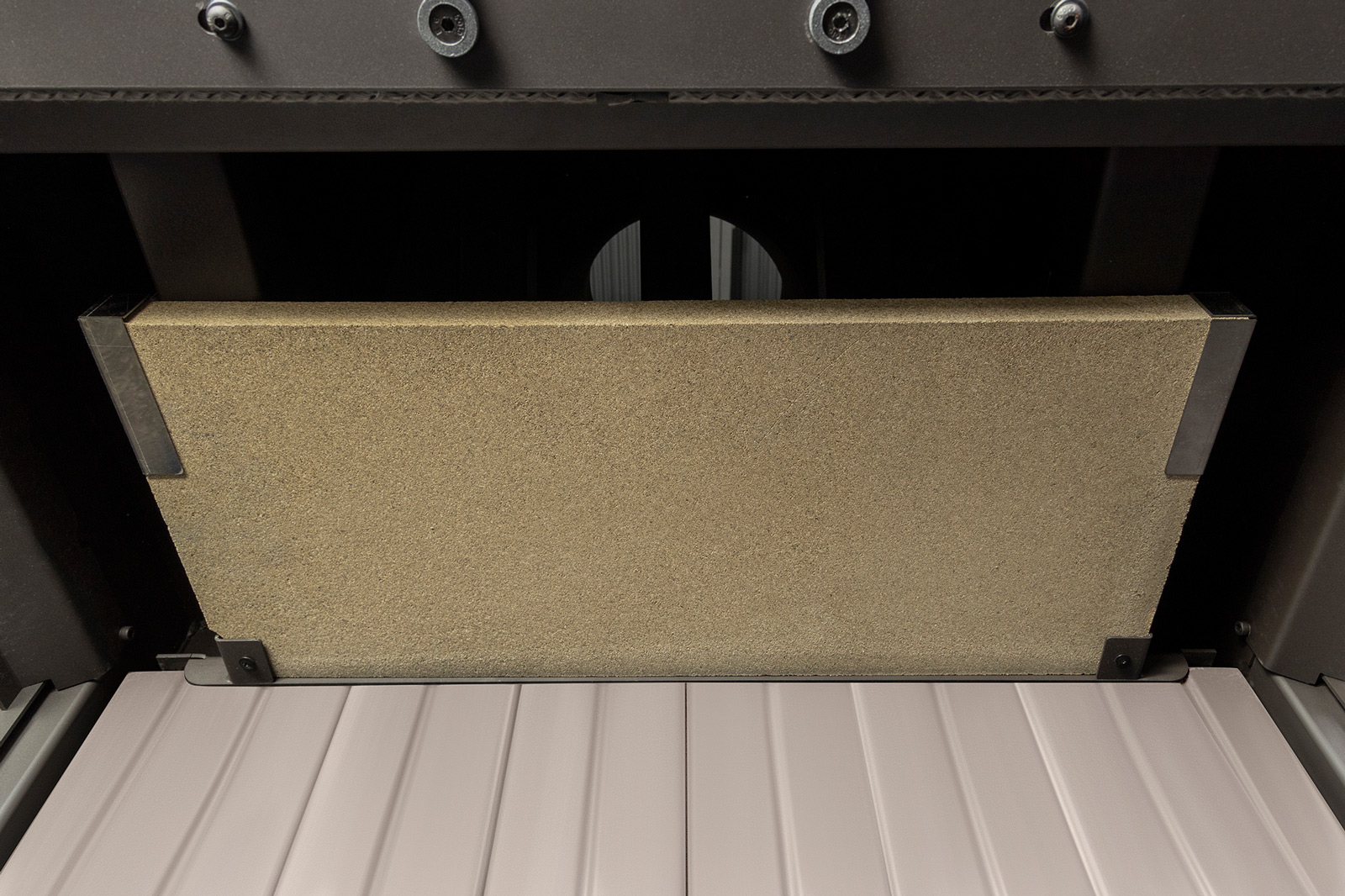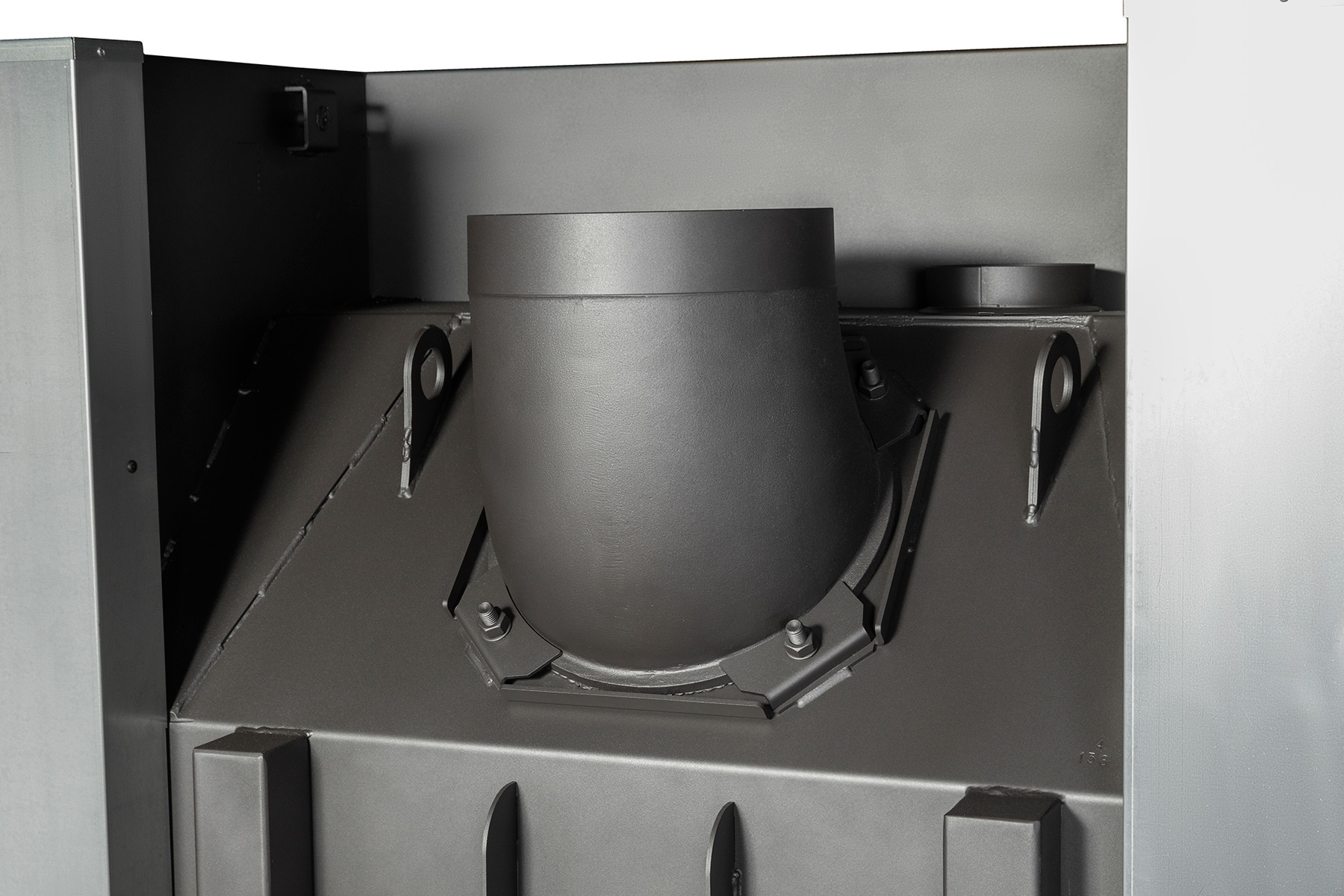 - Высокий дымосборник и пламярассекатель не позволяют дымовым газам попадать в помещение при открывании дверцы.