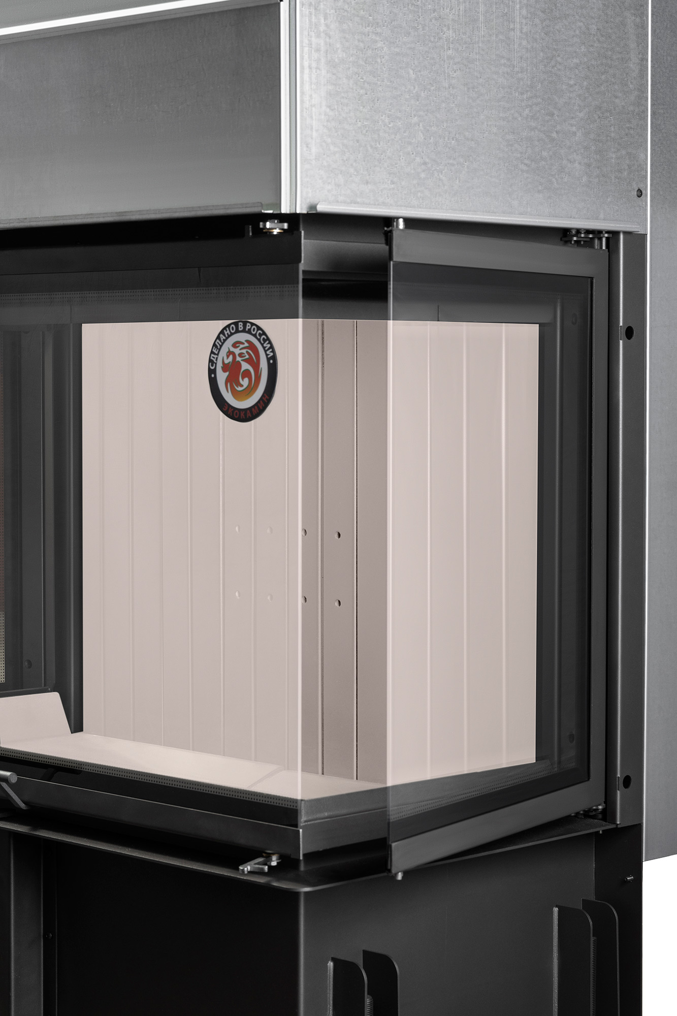 - Топочная камера футерована современным материалом, литьевым шамотом бежевого или черного цвета (по желанию покупателя) и надежно защищает металлические детали корпуса топки от перегрева.