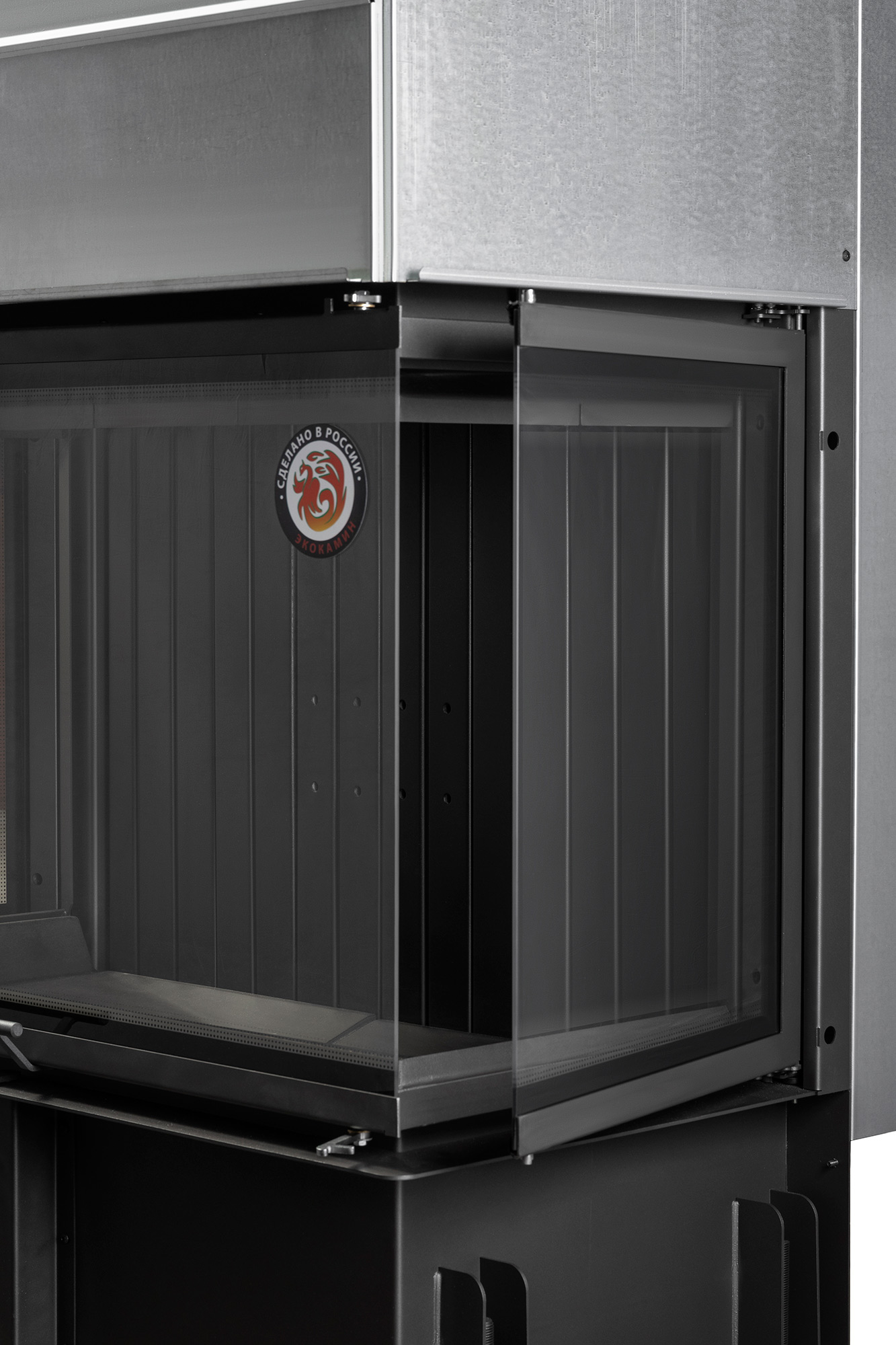 - Высокий дымосборник и пламярассекатель не позволяют дымовым газам попадать в помещение при открывании дверцы.