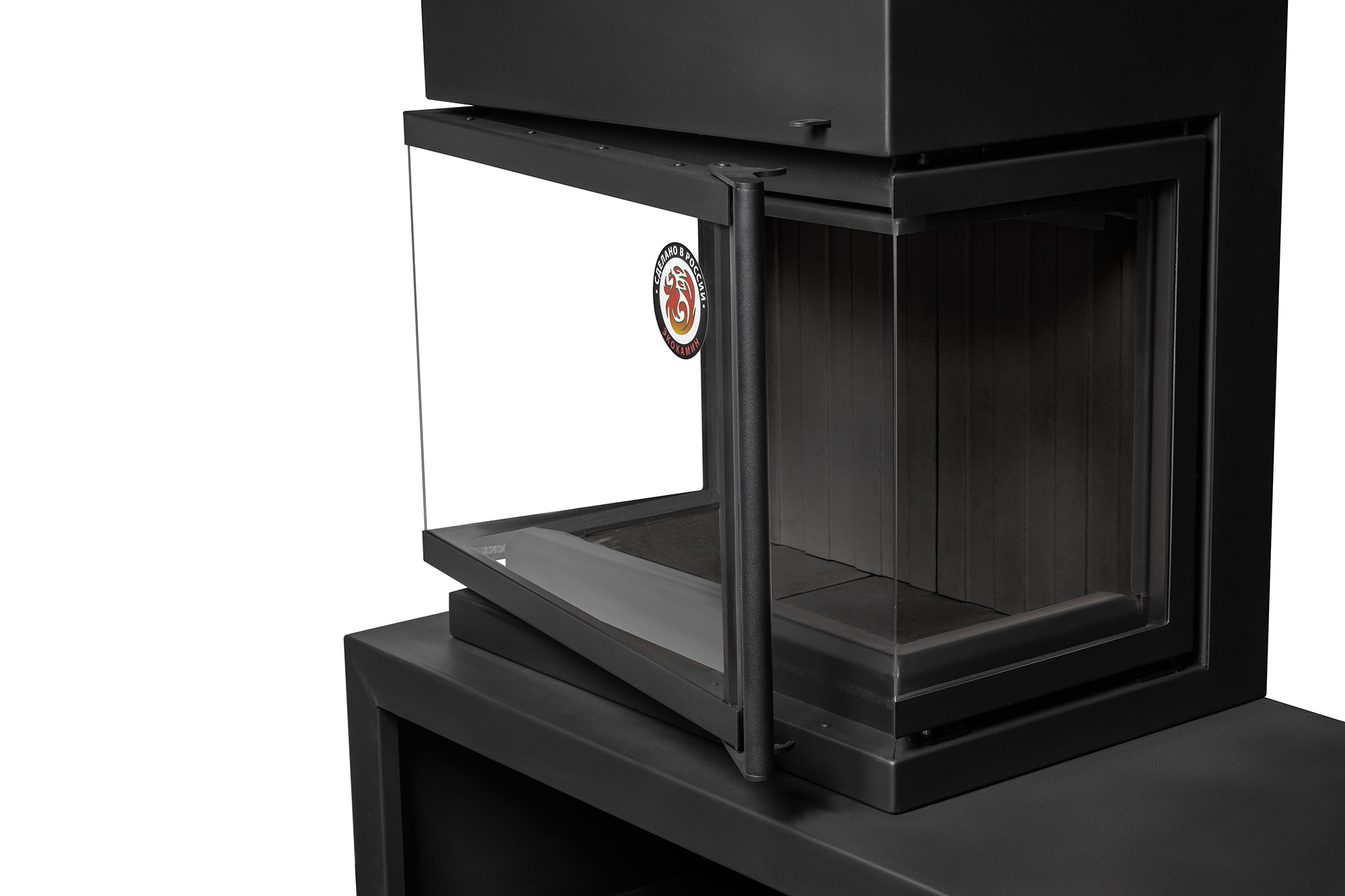 Камин МАДРИД на дровнике Гигант слева черный шамот подовый