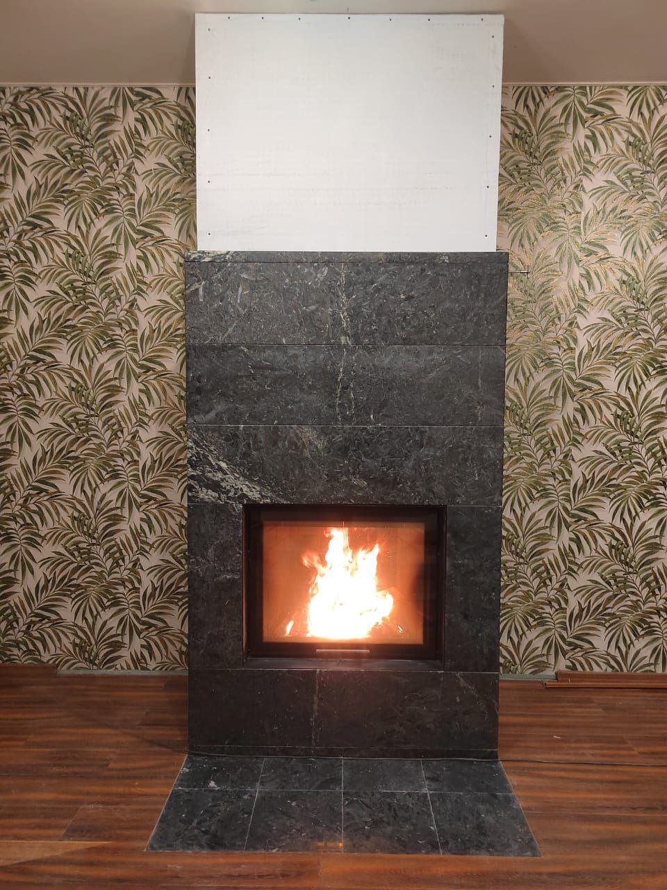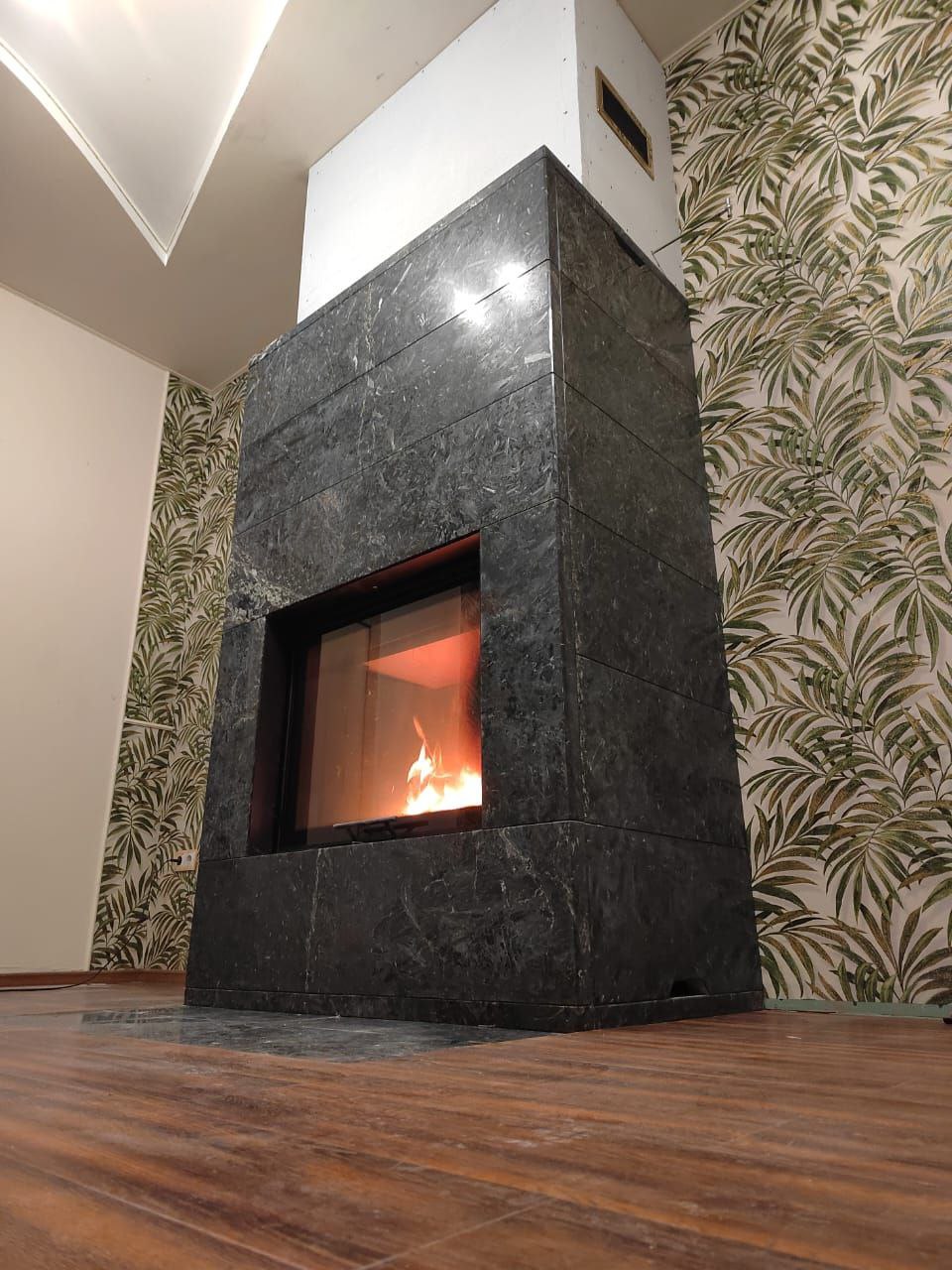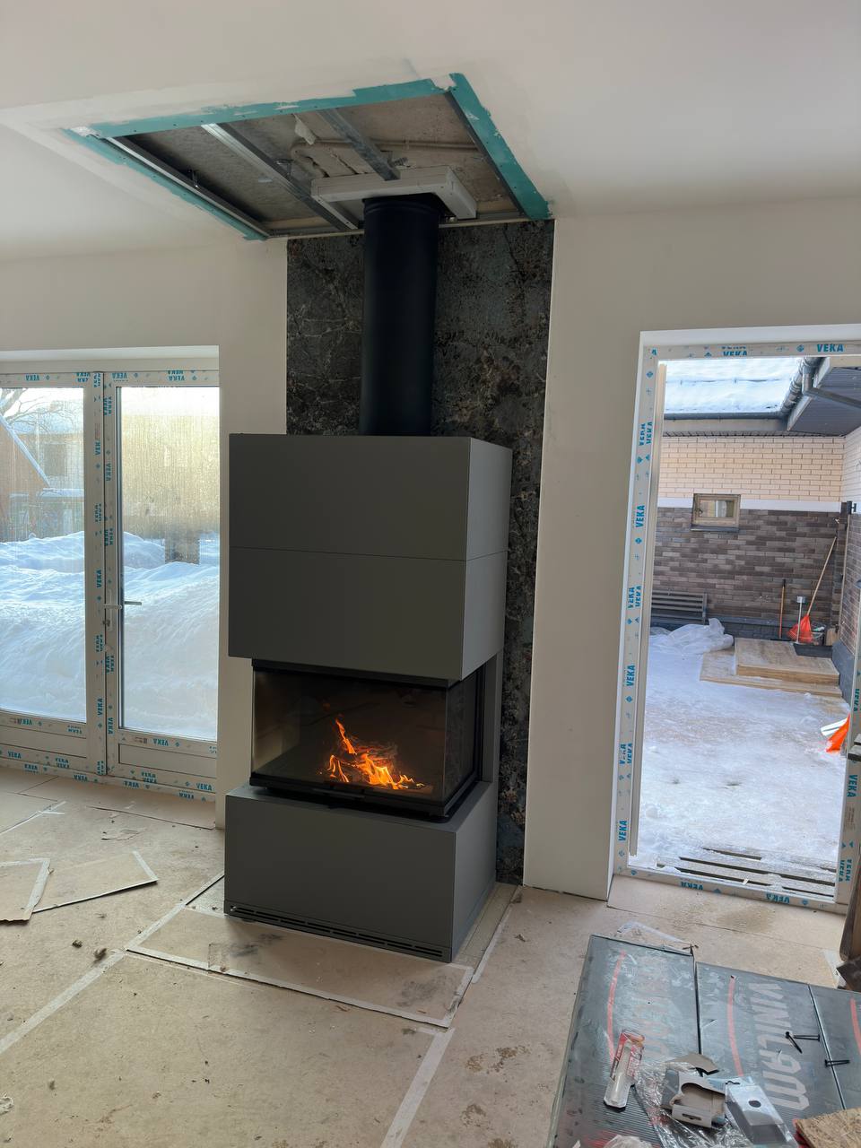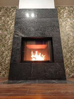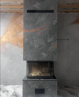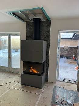 Топка ДЕЛЬТА 800 B три стекла принтинг черный шамот