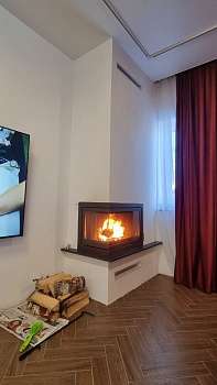 Топка ДЕЛЬТА 1200х800х450 PB три стекла подовая черный шамот