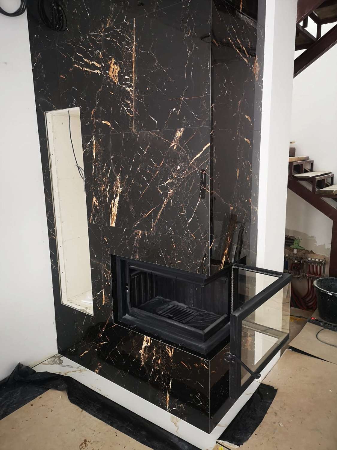Топка ДЕЛЬТА 800 RB два стекла правая принтинг черный шамот