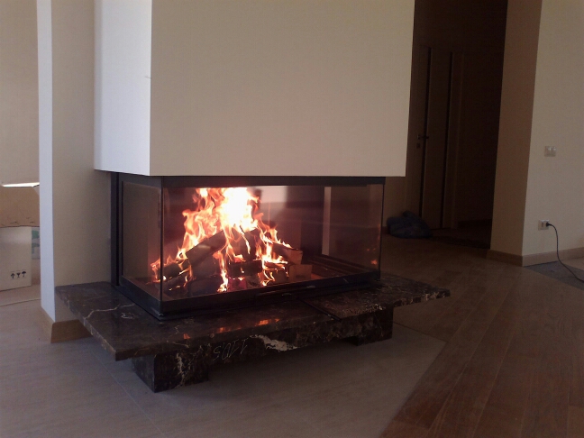 Топка ДЕЛЬТА 1000 B три стекла принтинг черный шамот